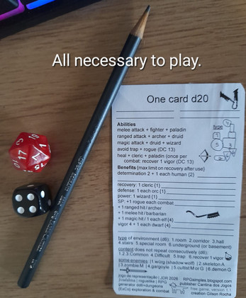 | Tags | d20, minigames, Minimalist, one-card, Tabletop role-playing game |